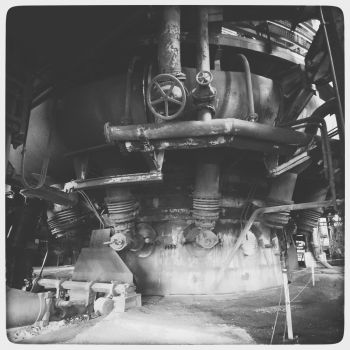 Wie kommt der Mensch auf die Idee, Tonnen um Tonnen Stahl - als Träger, in Rohre geschmiedet, verschweißt, verschraubt, vernietet - zu einer solch bizarren und mächtigen Skulptur aufzutürmen. Dabei spielt alles mit allem zusammen, funktioniert wie ein Uhrwerk und erzeugt neben unvorstellbarem Lärm, Giften und Schweiß den Stoff aus dem die industrielle Revolution geschmiedet ist, das Eisen.