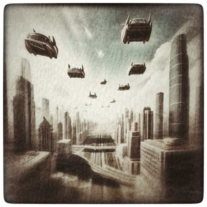 Nach weiteren hundertdreißig Jahren hat man den Antigrav-Antrieb komplett überarbeitet. Wahrscheinlich aus der Not heraus. Um den totalen Verkehrskollaps zu vermeiden, kann die Situation in der Vertikalen etwas entzerrt werden. Auf mehreren Ebenen schweben und fliegen "Autos" mit "Schiffen" um die Wette.
