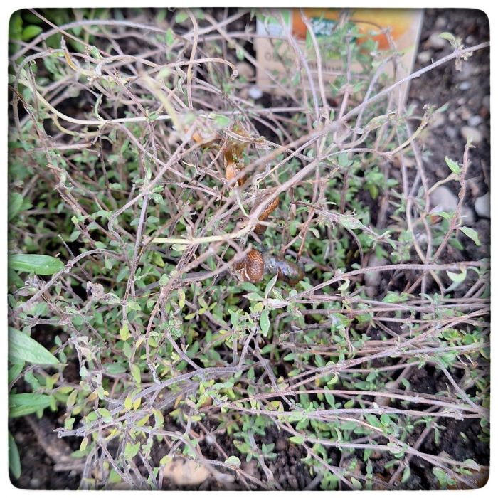 Neben allerlei Gemüse muss ich auch immer wieder die schmerzvolle Erfahrung machen, dass Schnecken zwar mit Sicherheit keine Feinschmecker sind, sich aber trotzdem gerne mit manchen Kräutern den Bauch voll schlagen. Von den Kräutern bleiben dann nur noch ein paar traurige Zweiglein oder ein kaum wahrnehmbarer Strunk übrig.