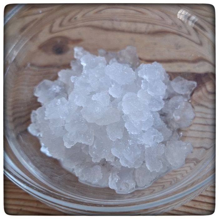 Die "Kristalle" lassen sich übrigens zwischen den Fingern zerreiben und hinterlassen einen schmierigen Film auf der Haut.