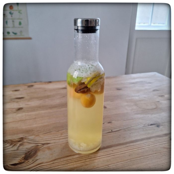 Warum überhaupt eine Zweitfermentation? Das ist so ähnlich wie beim Bierbrauen, während der Hauptgärung soll die Kohlensäure entweichen, bei der Nachgärung soll sie im Bier bleiben. Entsprechend enthält der Wasserkefir nach der Zweitfermentation Kohlensäure und prickelt angenehm erfrischend.